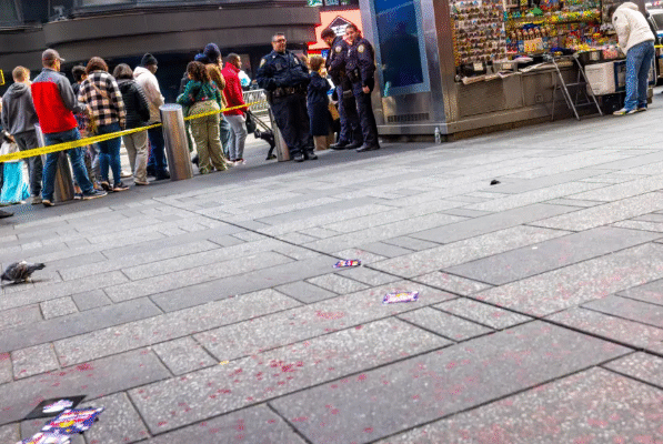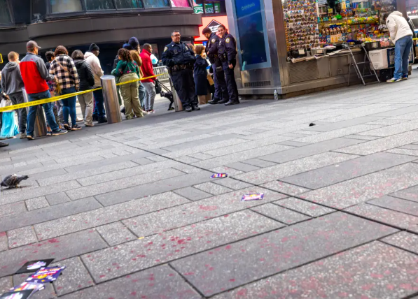 The 30-year-old victim was outside 1501 Broadway, which houses Raising Cane’s Chicken Fingers and other restaurants, at West 44th Street in the Crossroads of the World when the attacker plunged a knife into his left ribs and arm around 11:40 a.m., cops said.