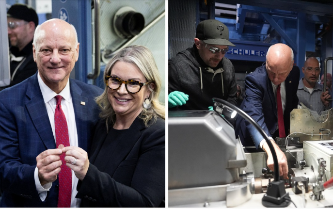 US Treasurer Brandon Beach pressed the button at the Philadelphia Mint on Wednesday to stamp out the final pennies after 232 years of production.